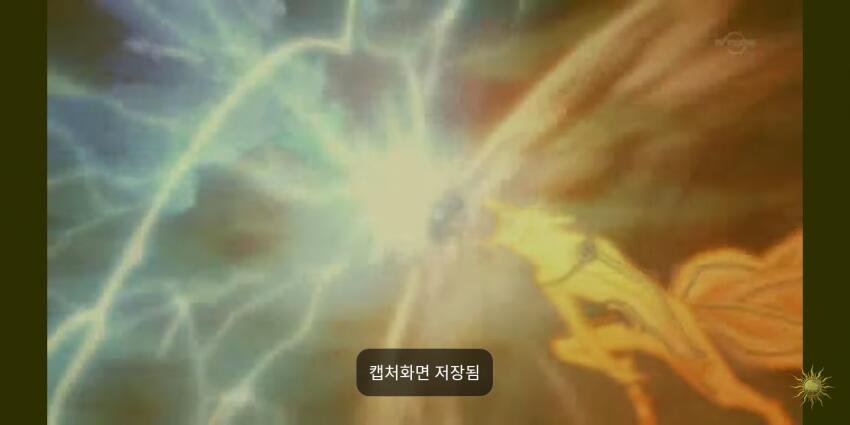 웃음 포인트는 명확합니다. 진지한 전투 장면 위에 지극히 평범한 일상의 흔적들이 겹쳐 있다는 점입니다. 블루라이트 필터, 캡처 알림 같은 요소들이 몰입을 깨뜨리면서도, 그 깨짐 자체가 유머가 됩니다. 누군가 새벽에 이 장면을 보고 흥분해서 급하게 캡처했을 것 같은 생생함이 느껴집니다.